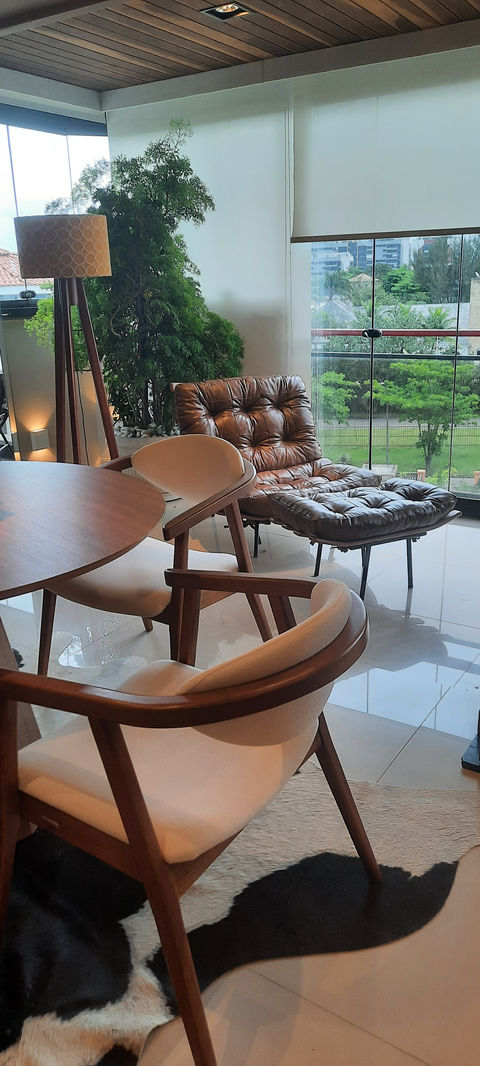 Com uma paleta de cores complementares, como os sofás - um de couro captonado clássico e o outro tecido marinho contemporâneo - a Cobertura Barra Deck é um verdadeiro refúgio urbano onde é possível relaxar e trabalhar com estilo. Cada detalhe, desde o piso em porcelanato Portobello até as peças de arte sacra cuidadosamente selecionadas, contribui para a difusão da alma característica dos projetos de Cláudio Brandão. Esta cobertura é mais do que um espaço; é uma expressão de sofisticação e bom gosto, criada para proporcionar uma experiência única aos seus moradores.
